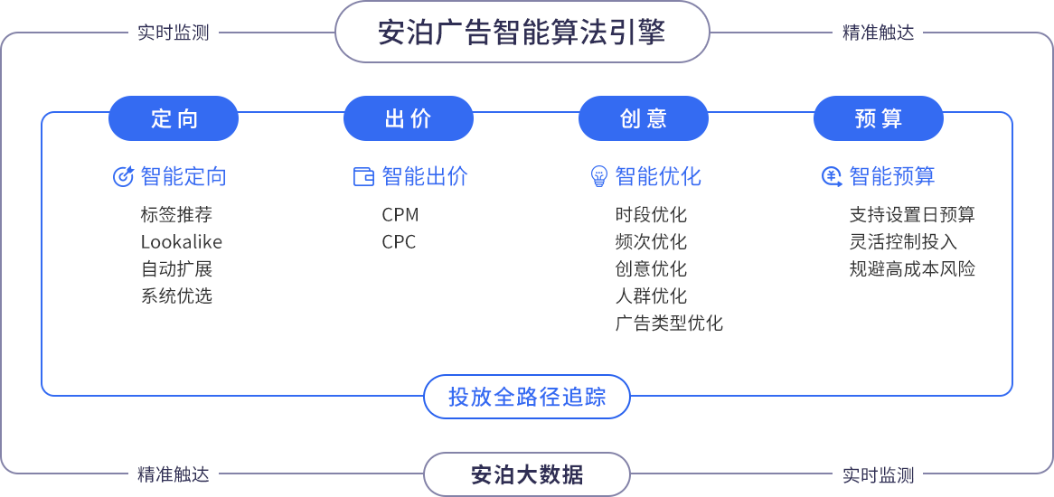 安泊聚合通过智能化、自动化的方法为广告主降本增效,找到效率与效果的最佳平衡点,充分发挥营销的潜力与价值。